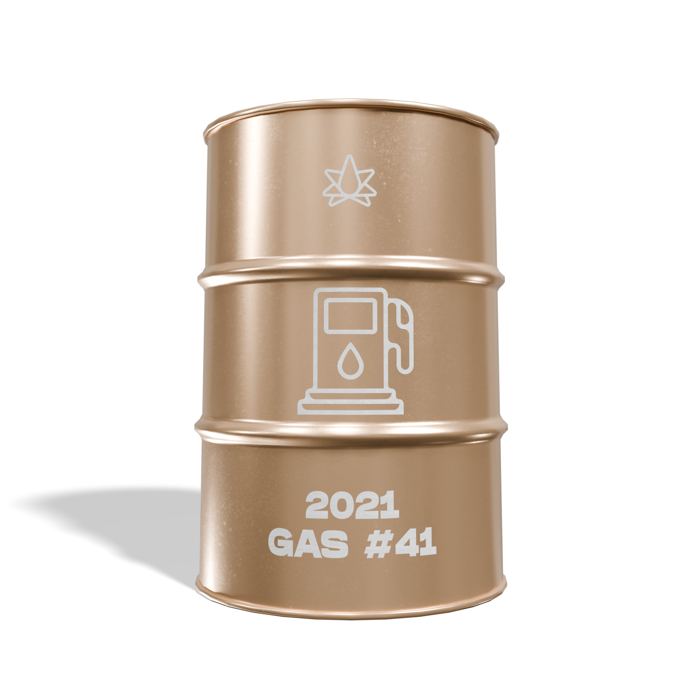 2021 Gas #41 is a hemp-derived terpene oil rich in Limonene, Caryophyllene, and Pinene. The flavor, aroma, and effect are reminiscent of Skywalker OG, Tahoe OG, and OG Kush strains. This oil is available for retail purchase in 5mL, 25mL, 100mL, and 250mL sizes with wholesale bulk pricing available for sizes starting at 1L.